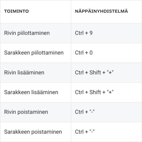 Ota alta talteen kätevät näppäinkomennot rivien ja sarakkeiden käsittelyyn, joiden hallitseminen parantaa merkittävästi Excelin käyttöä ja lisää työskentelyn tehokkuutta!