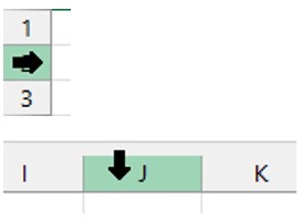 Valitse rivi tai sarake napsauttamalla sen tunnuksen päällä eli napsauta rivinumeroa (ylempi kuva) tai saraketunnusta (alempi kuva).