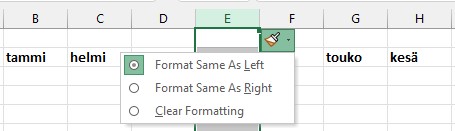 Jos sarakkeessa, jonka kohdalle lisäät uuden sarakkeen, on muotoiluja, voit valita miten uusi sarake muotoillaan.