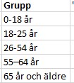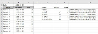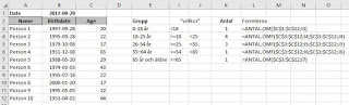 Jag vill nu räkna hur många personer som ingår i följande åldersgrupper: