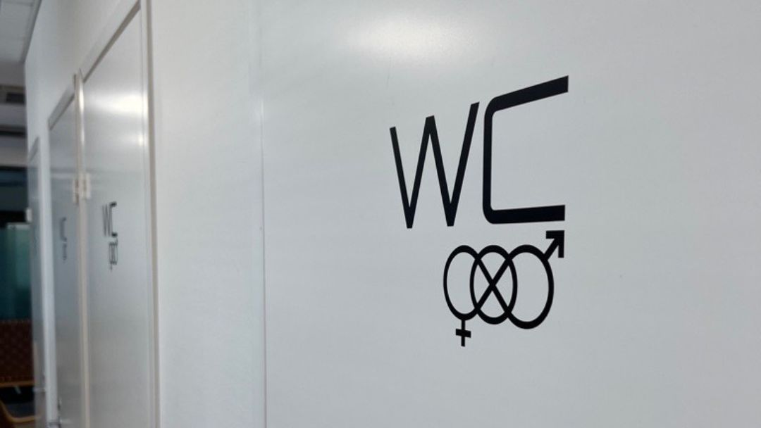 Niin toimisto- kuin asiakastilojen wc:t on merkitty alun perin Taiteen edistämiskeskuksen tiloihin suunnitellulla, sukupuolineutraalilla merkillä. Tiedostamme, ettei jako naisten ja miesten wc-tiloihin palvele kaikkia, ja haluamme olla kaikille turvallinen tila tulla ja olla.
