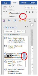 Tämän jälkeen siirrytään kohtaan jonne kopioitu aihe halutaan liittää, avataan leikepöytä, mikäli se ei ole auki ja ositetaan leikepöydässä liitettävää kohdetta ja valitaan kohteen nuolesta Liitä (Paste).