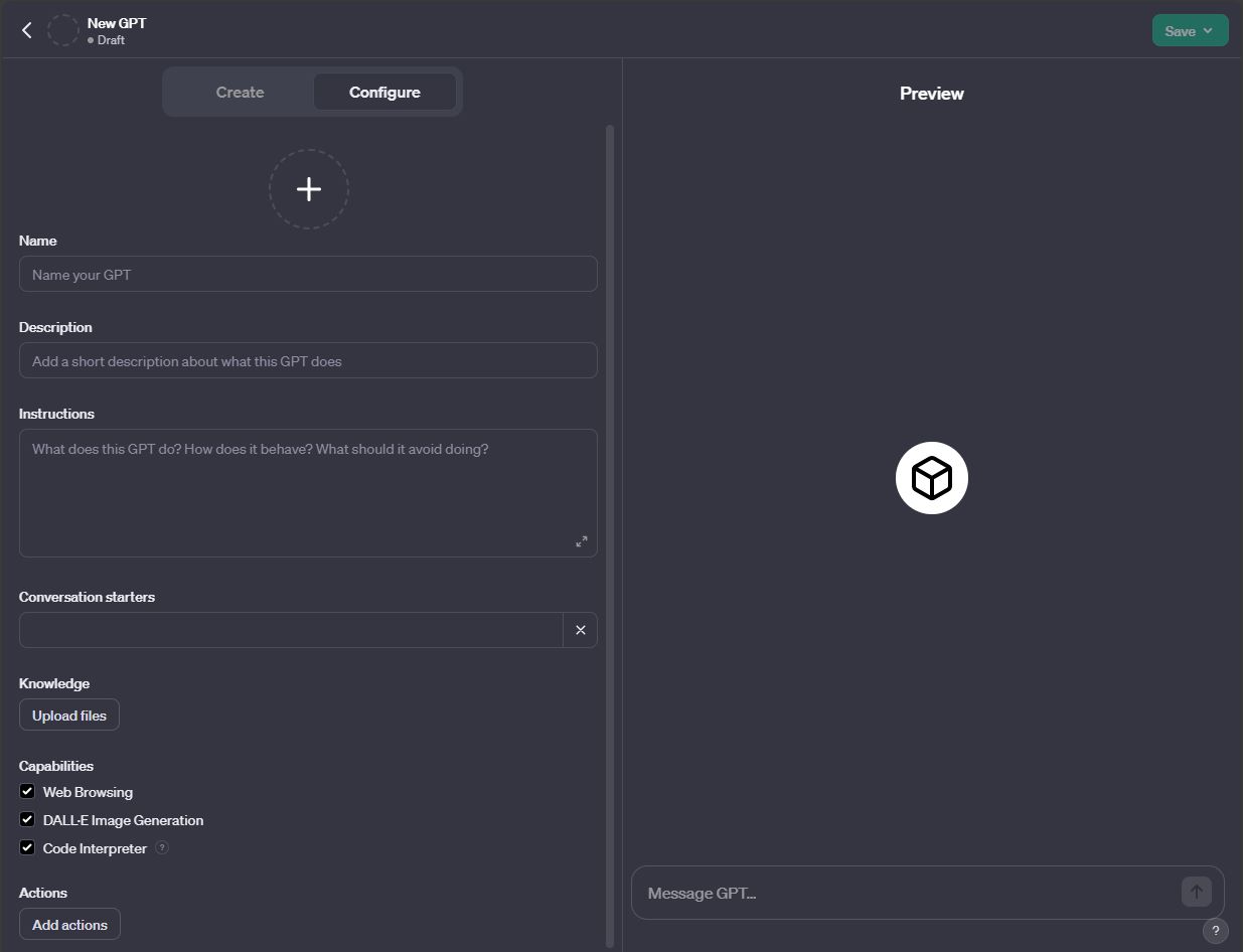 Uudet ominaisuudet antavat ChatGPT Plus -käyttäjille mahdollisuuden luoda omia GPT:itä, joissa on tietyt ohjeet, tiedot, ominaisuudet ja mukautetut toiminnot. GPT:t voidaan räätälöidä erityisiin käyttötarkoituksiin. Voit esimerkiksi luoda oman henkilökohtaisen valmentajan, teknologia-asiantuntijan tai apukokin: