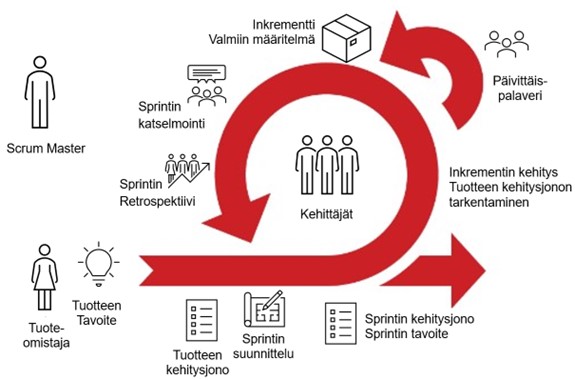 Tuoteomistaja ohjaa tiimien kehitystä kohti tuotteen ja palvelun tavoitteita. Johtaja ohjaa organisaatiotaan kohti strategisia tavoitteita. Tekemistä on paljon ja aika on rajattu, mutta kaikki puskevat hiki hatussa töitä päästäkseen maaliin.