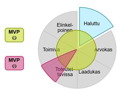 Palataan hetkeksi takaisin harhoihin ja myytteihin. Vaikka MVP onkin pienin mahdollinen versio tuotteesta, ja sen vuoksi todennäköisesti halvempi kuin loppuun asti täyteen potentiaaliinsa kehitetty versio, sen tärkein kriteeri ei pitäisi olla hinta. Mahdollisimman halvalla tehty on usein puolittaisella laadulla kiireellä tehty ratkaisu, ja pienuudestaan huolimatta MVP:n on oltava laadukas ja tuotava arvoa käyttäjilleen ja erityisesti oppia kehittäjilleen.