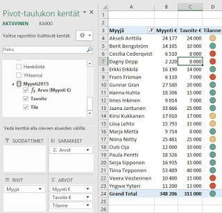 Saatan tosin saada meidän firman myyjistä pari vihamiestä, kunhan esimies lukee tämän ja oppii seuraamaan tavoitteiden toteutumista näinkin helposti Excelin kautta :).