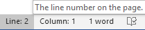 Mikä on Wordin Tilapalkissa (Status Bar) näkyvä viiva? Vihjeessä näkyy kuitenkin ”Sivun rivinumero”.