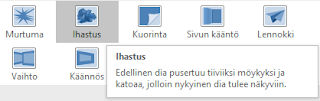 PowerPointissa on suuri määrä dian välisiä Siirtymiä (Transitions/Övergångar) ja lisää tulee jokaisessa päivityksessä. Versiossa 2013 tuli siirtymä nimeltä Ihastus (?), jonka vihjetekstissä kuitenkin selitetään ”… dia pusertuu möykyksi…”. No, pääasiassa Crush on murskata ja rusentaa (varsinkin tässä siirtymässä ja yhteydessä), mutta toki se voi olla myös ihastuminen.