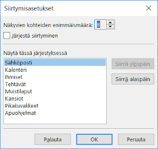 Outlookin Siirtymisasetuksissa on Järjestä siirtyminen. Liittyykö tämä joukkojen evakuointiin?