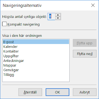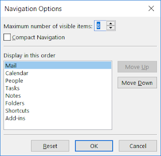Google-kääntäjäkin osaa ehdottaa kompakti navigointi (Compact Navigation). Tämä liittyy Outlookin Kansioruudun alareunan kuvakkeiden näyttämiseen. Ensiksi on kompakti navigointi (pienet kuvakkeet).