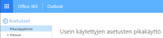 Outlookin 365 -versiossa on asetuksissa komento Pikanäppäimet, jolla saa näkyviin luettelon kätevistä pikanäppäimistä.