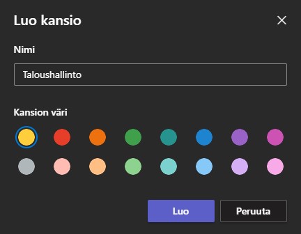 Teamsin yksi uusista ominaisuuksista on kansioiden värit. Voit luoda erilaisia kanavia tietyille projekteille tai aiheille, ja jokaisella kanavalla voi olla oma kansiorakenteensa tiedostoja varten. Kansiorakenne auttaa pitämään tiedostot järjestyksessä ja helpottaa niiden löytämistä. Yksi vinkki tiedostojen ja kansioiden organisointiin on käyttää värejä: voit määrittää eri värejä eri kansioille, mikä tekee niistä helpommin tunnistettavia ja erottuvia.